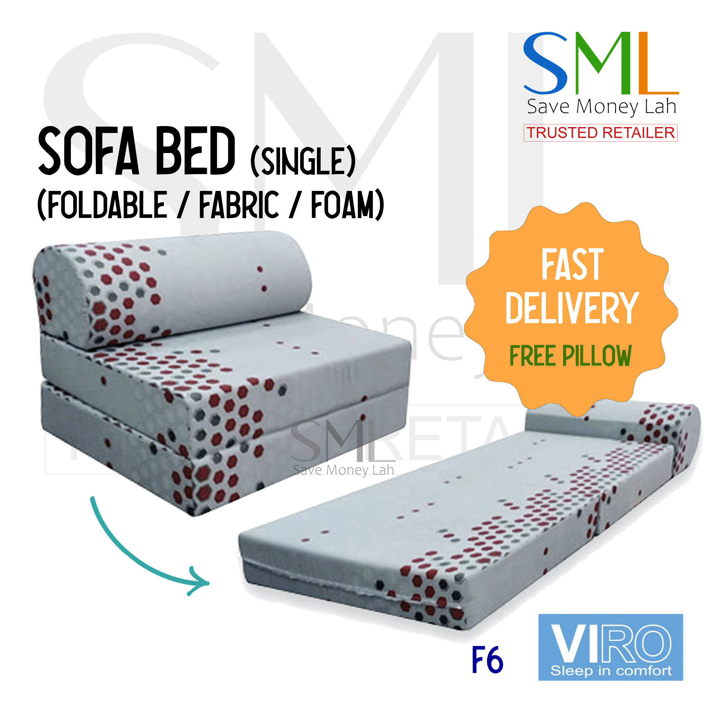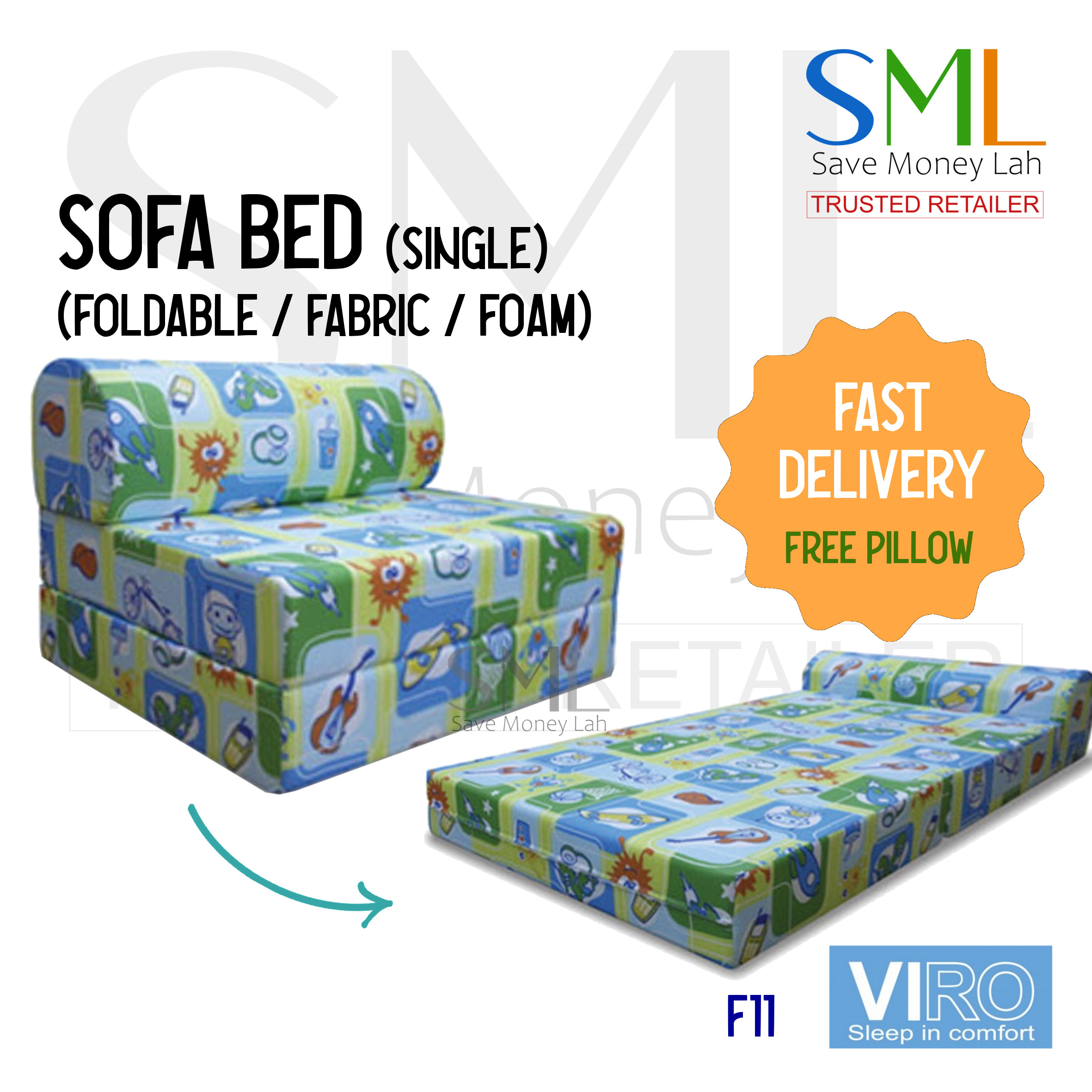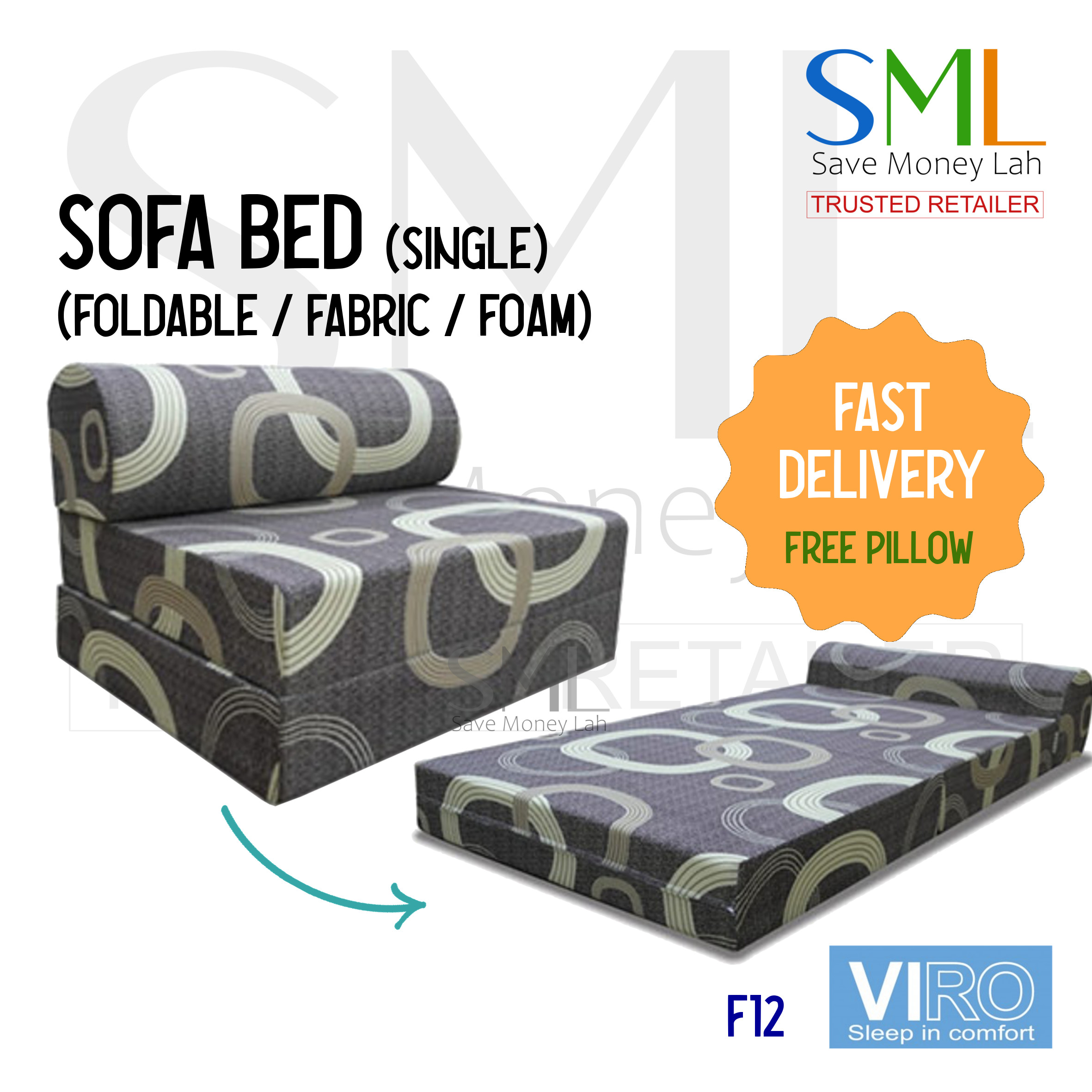 Foldable Fabric Sofa Bed - Foam Type (Single Size) - Medium Firm - 5 designs - Viro