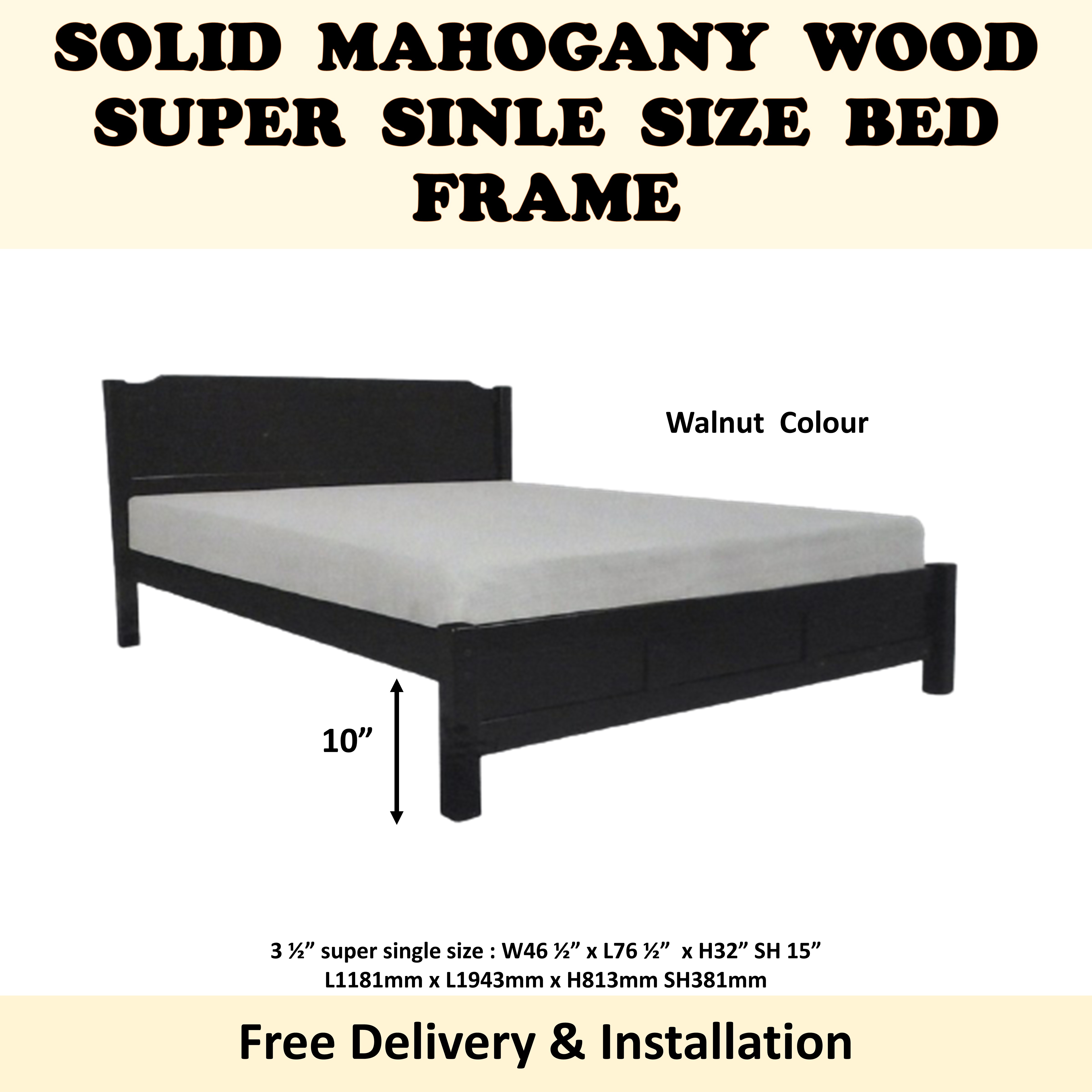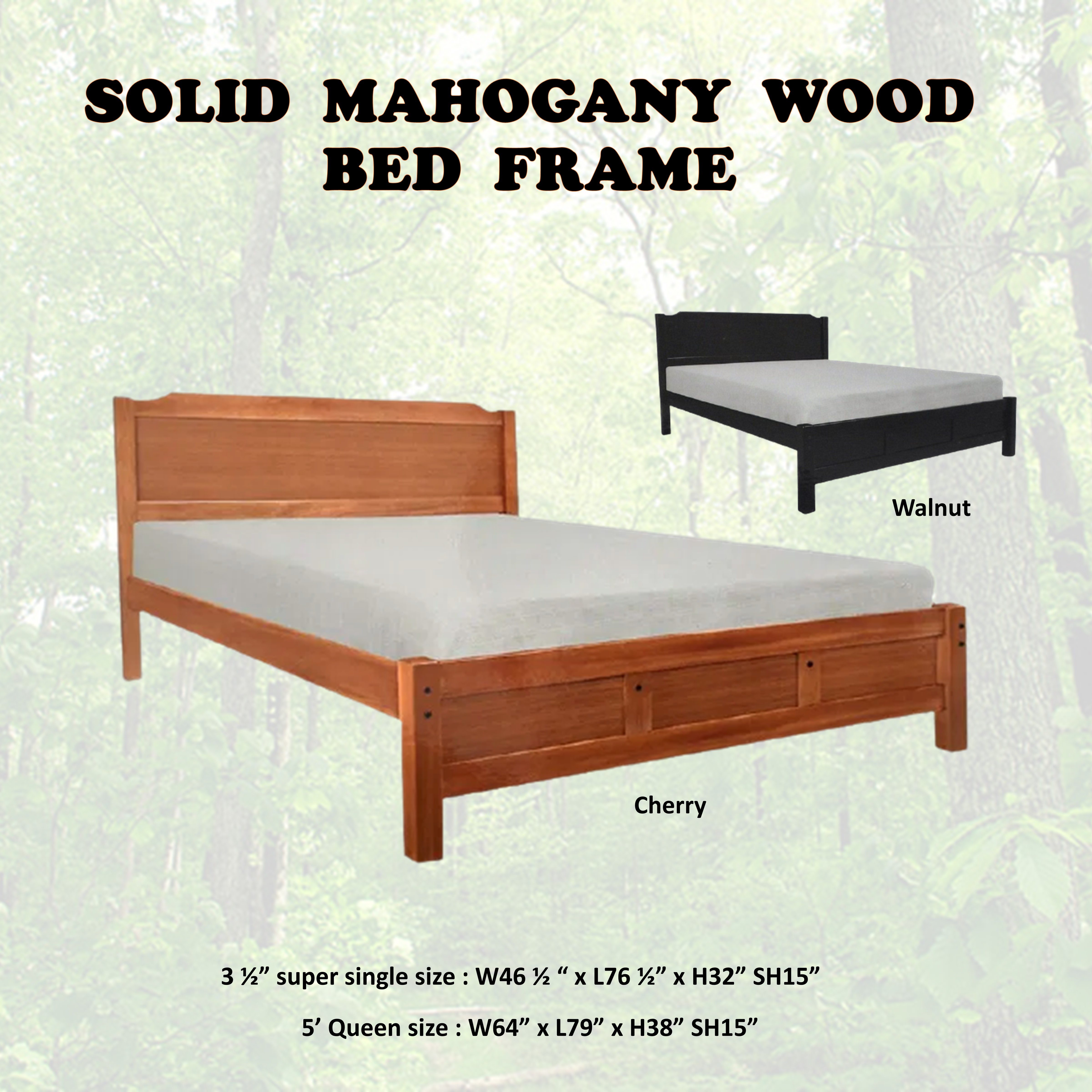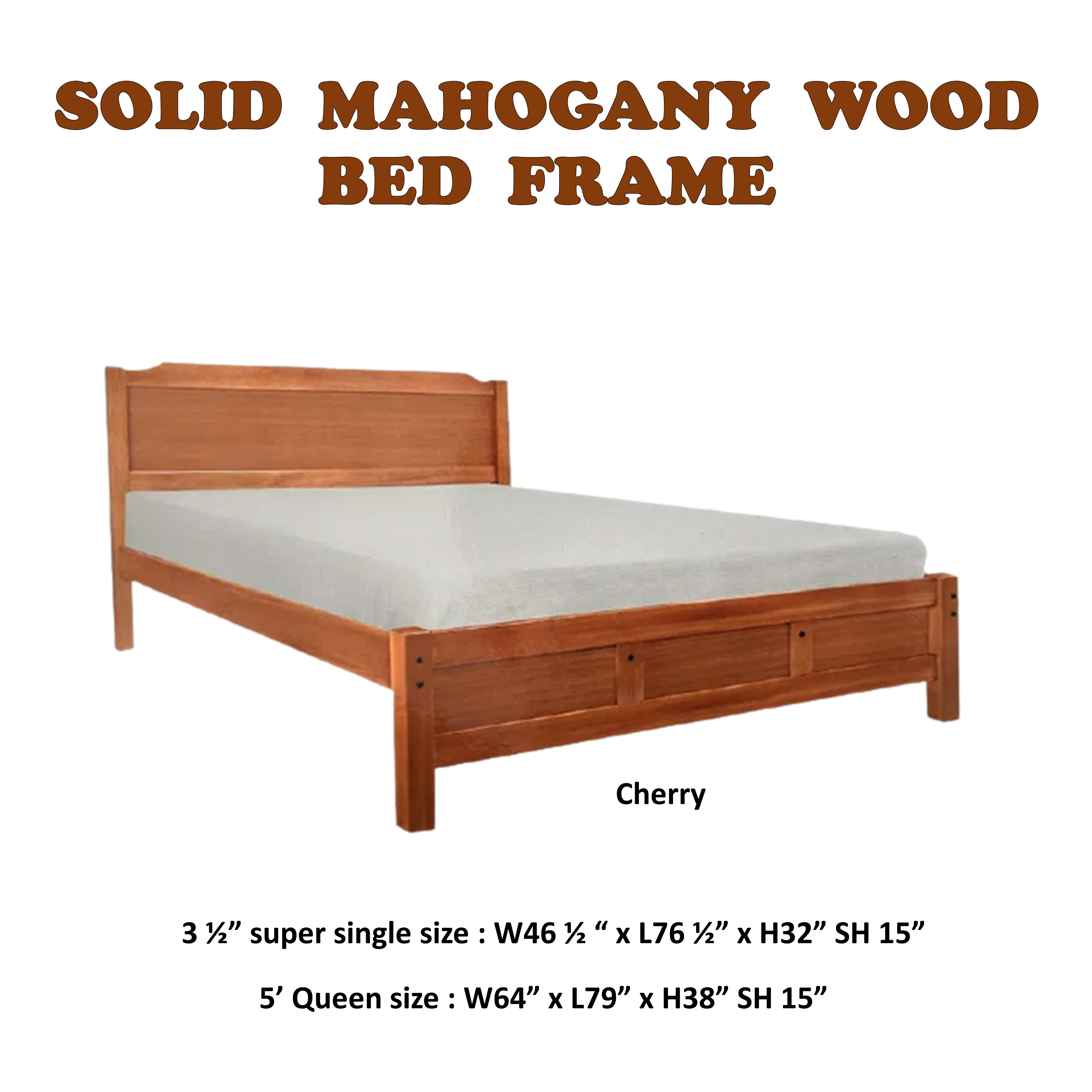 HANNA Mahogany Solid Wooden Super Single / Queen Bed Frame In Cherry & Walnut Colour