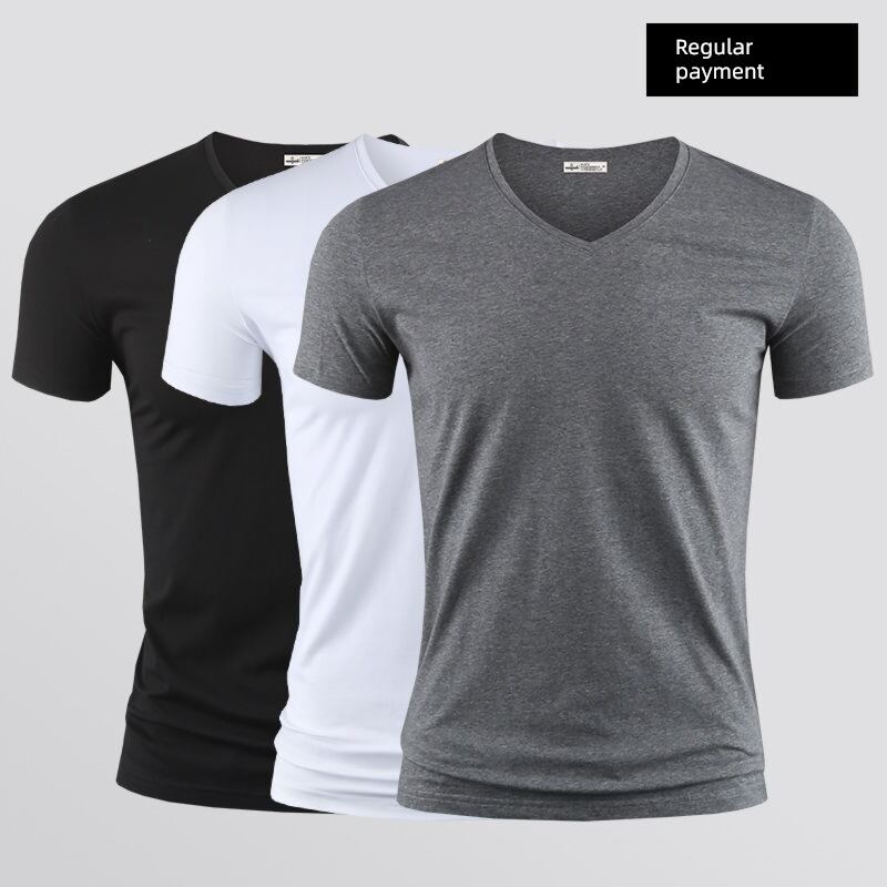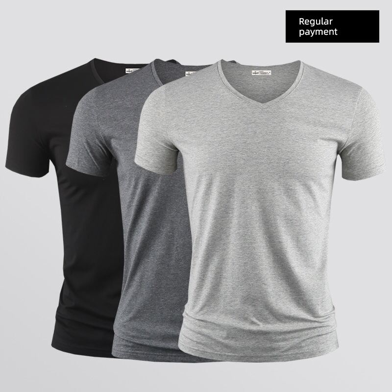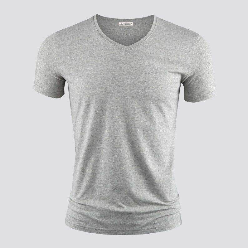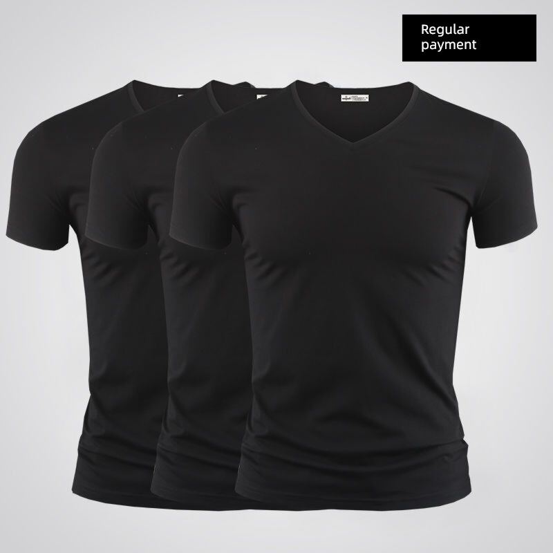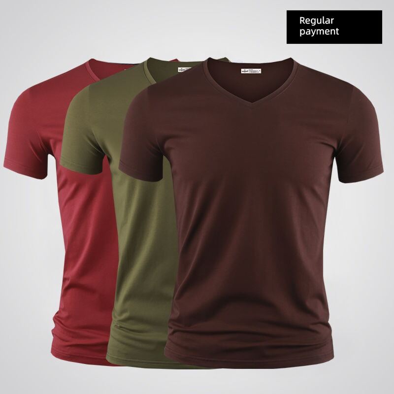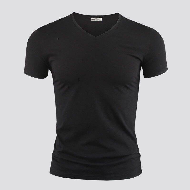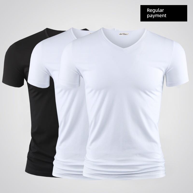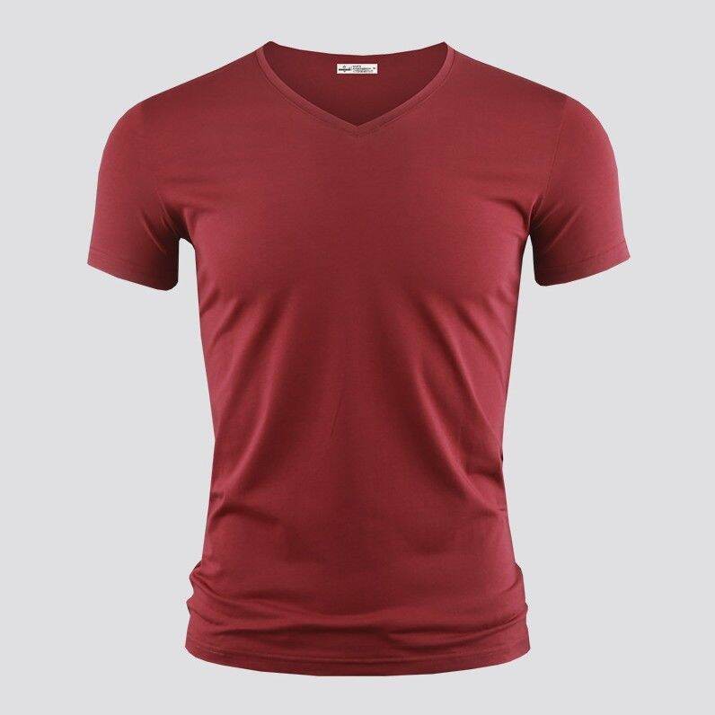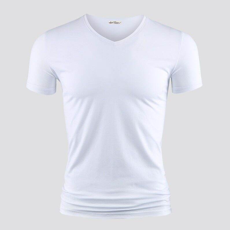 Modal Men's Solid Color and V-neck Slim-Fit Ice Silk Short Sleeve Shirt