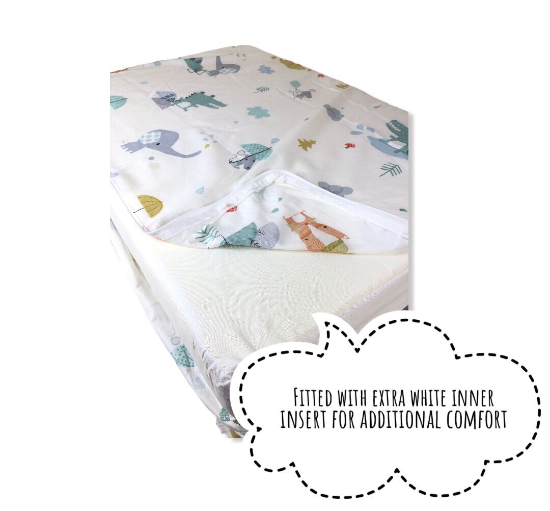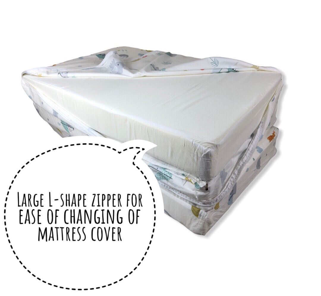 Specially curated with the comfort of your toddler in mind, the kids foldable mattress offers a firm 3 inch foam material fitted with a 100% cotton cute prints to ensure a breathable and comfy touch material for kids. The foam material is made of high