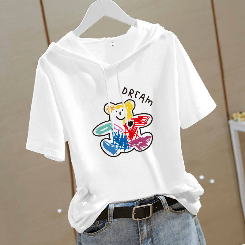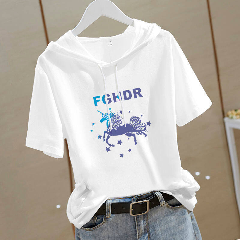 Korean Blouse Women Printing Ladies T Shirt Loose Short Sleeve Casual Top Women Shirt Fashion Blouse for Woman Summer Women's White Blouse Short-sleeved Hoodie Blouse
