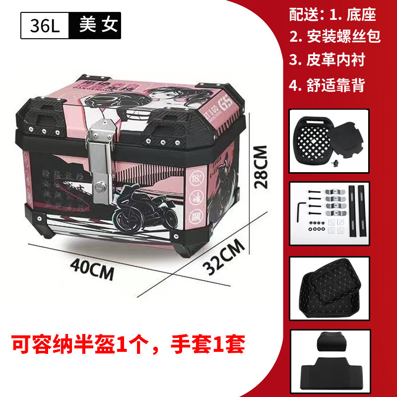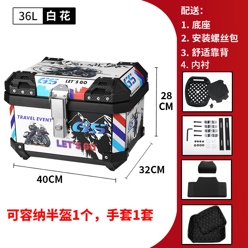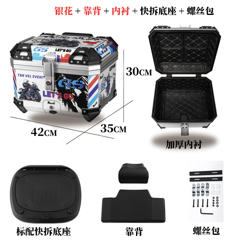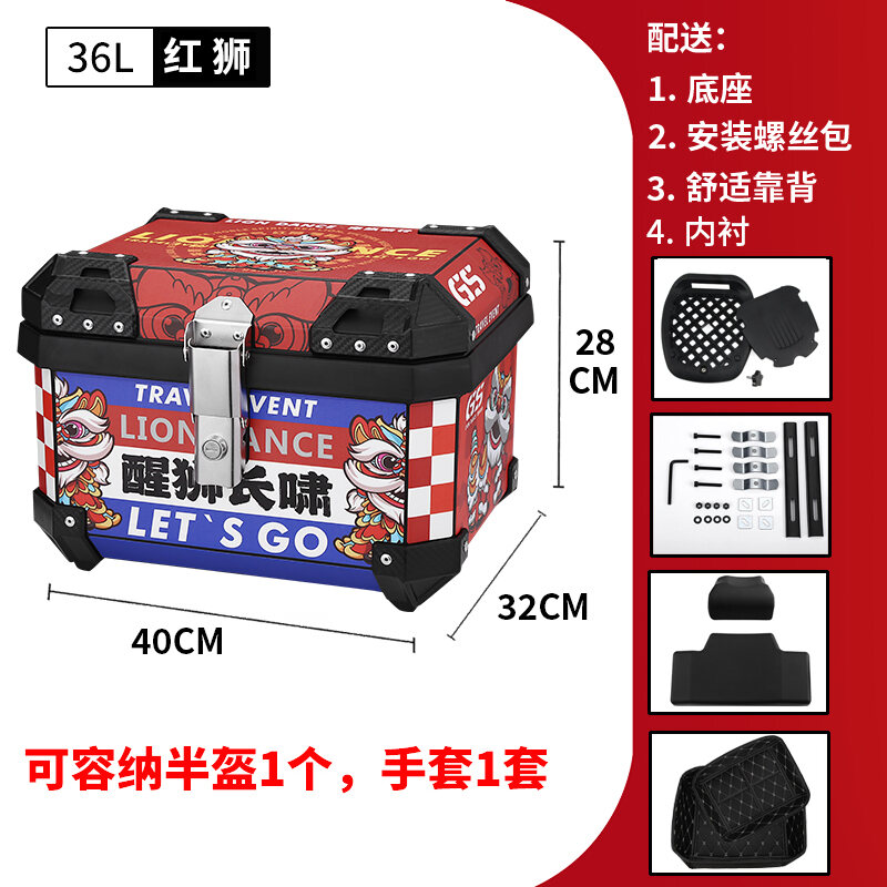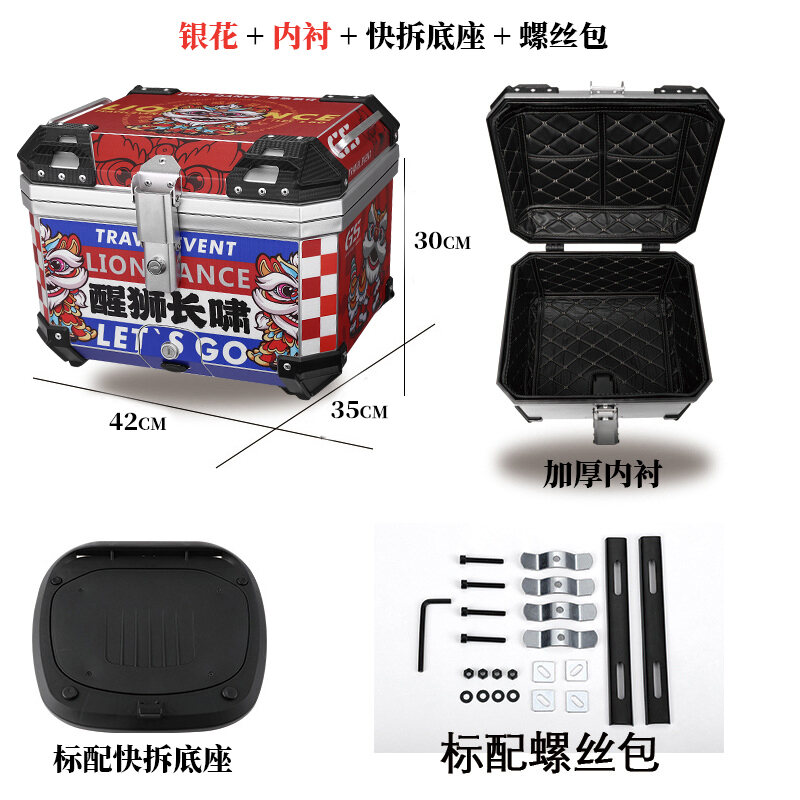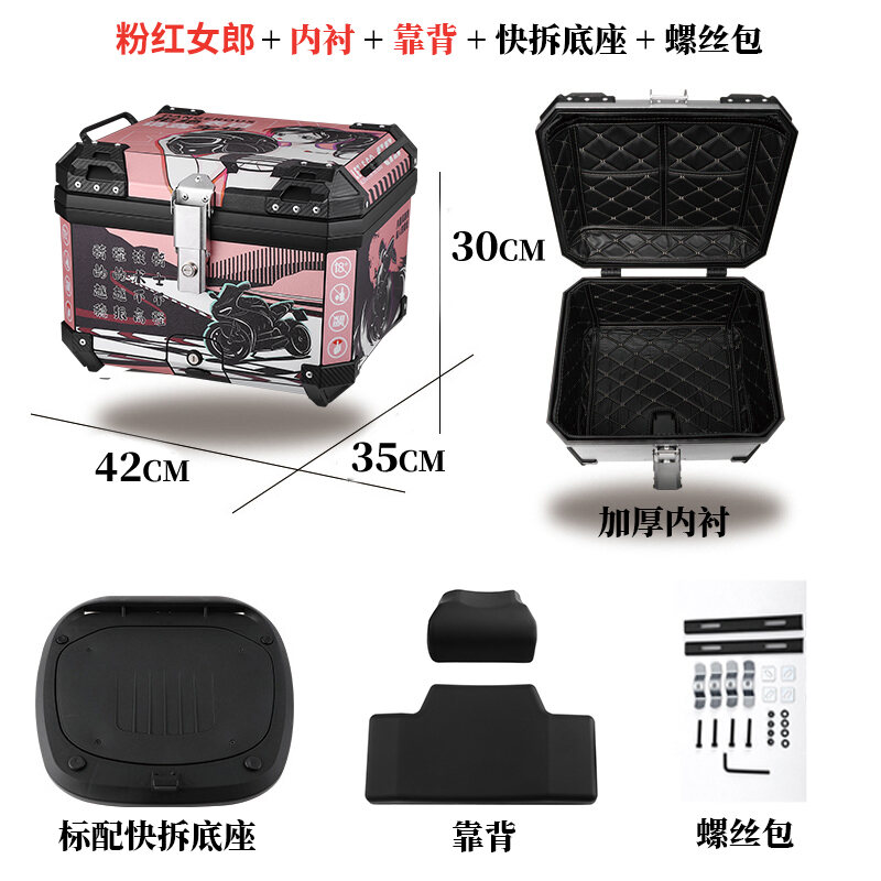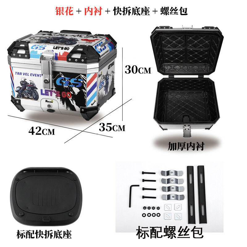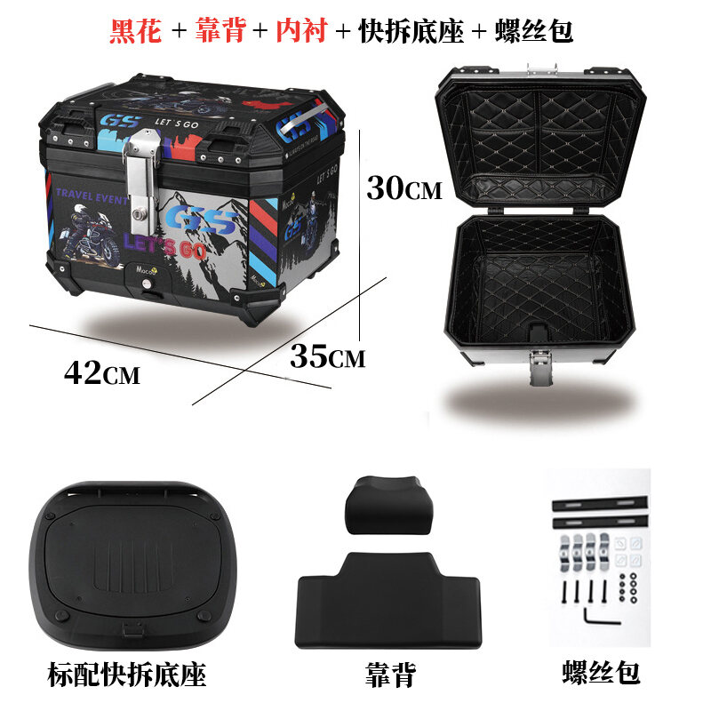 ABS Tail Box 45l Large Capacity Motorcycle Scooter Electric Vehicle Toolbox Quick Release Large Non-Aluminum Alloy Tail Box